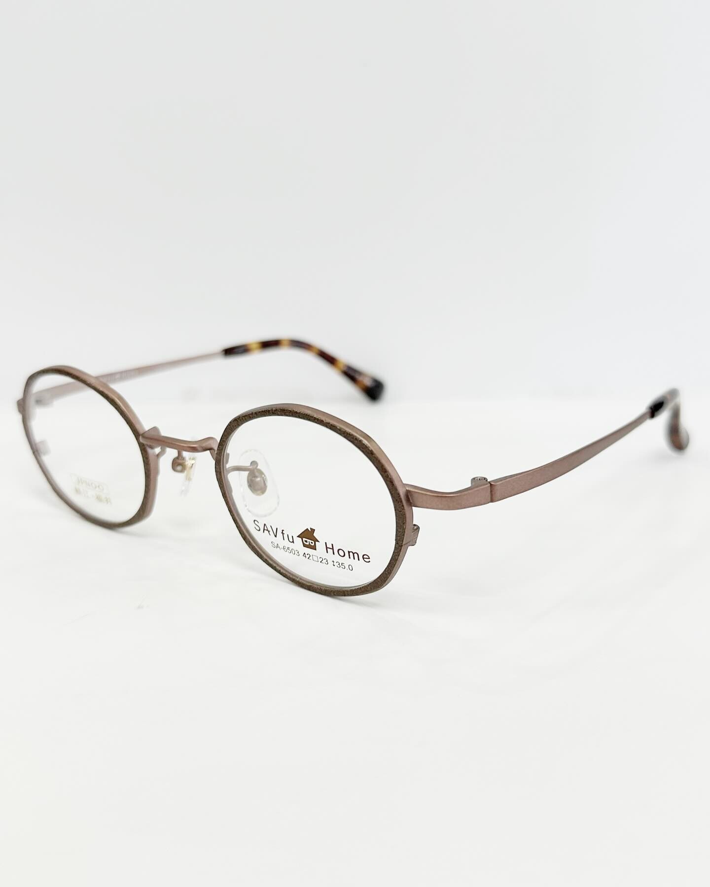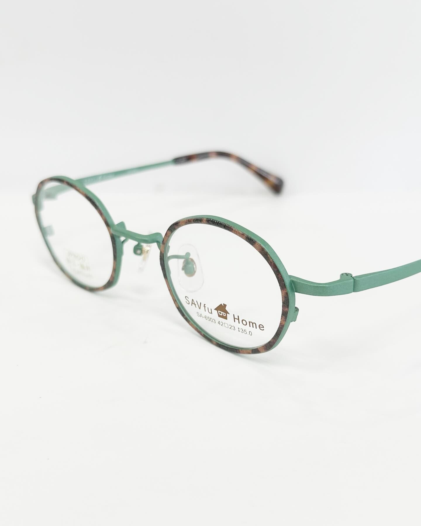 福井県鯖江の技術を揃えたカジュアルメガネ『SAVfu Home(サブフ ホーム)』の小ぶりのラウンドシェイプモデル。さりげないシミラールックで気軽に楽しめるデザインとなっております。