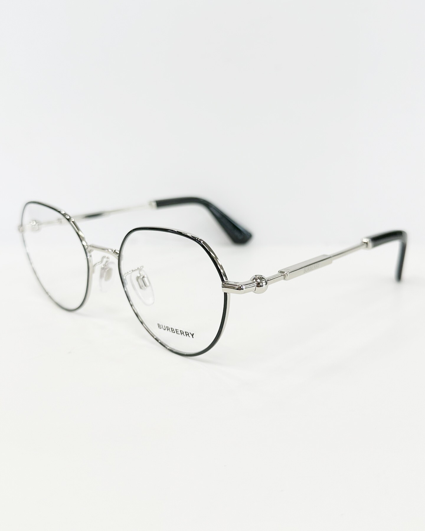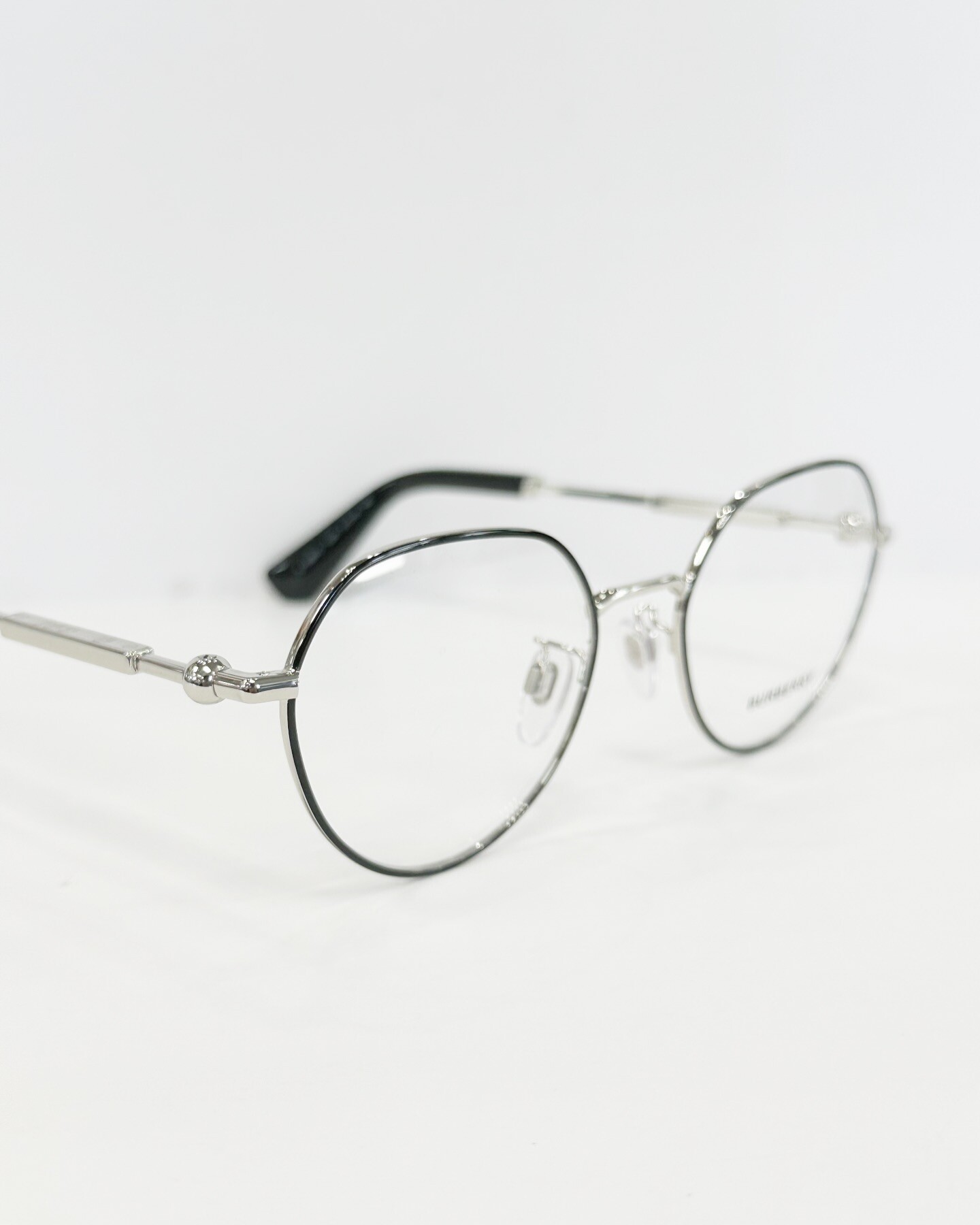 ベルから着想を得た球体のヒンジを備えたメタルテンプルに、ロゴやイングリッシュローズ、馬上の騎士など伝統的なモチーフが刻まれたプラークが飾られています。